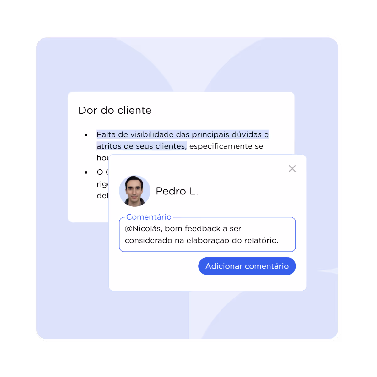 Você pode comentar e compartilhar o que aconteceu em cada conversa, para que sua equipe possa avançar em alinhamento e sem repetir esforços.